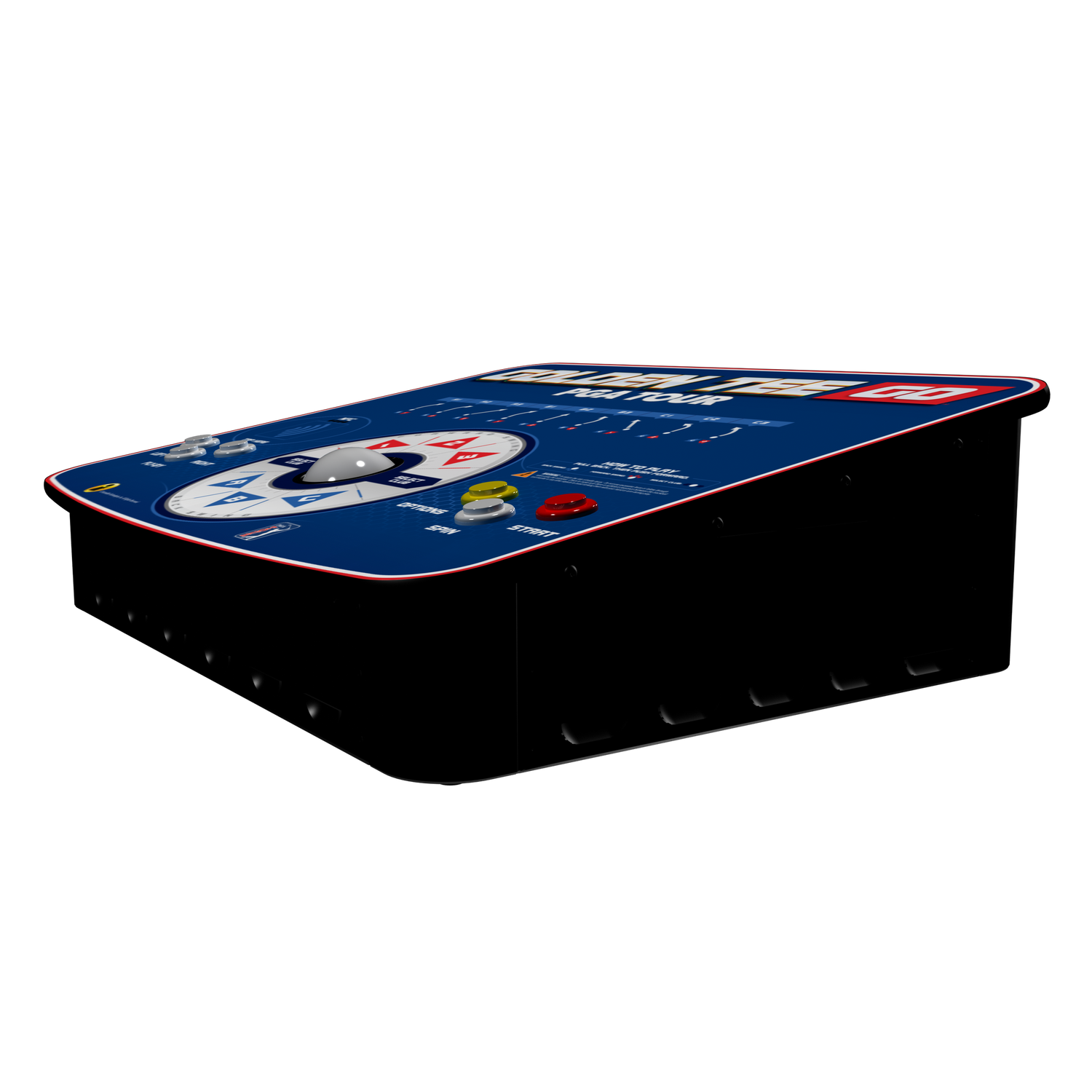 This cabinet includes officially licensed PGA TOUR course content recreated using real-world layout reference data.