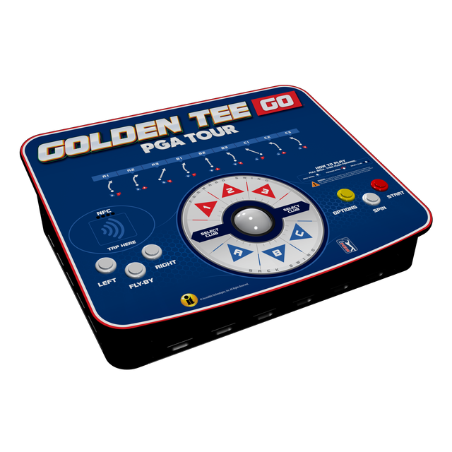 The Golden Tee GO PGA TOUR Cabinet by Incredible Technologies is a compact and portable arcade cabinet designed for use with the Golden Tee PGA TOUR platform. The cabinet features a lightweight construction and reduced footprint, making it suitable for environments where space is limited. This product is the portable arcade cabinet only and does not come with a display. An external display is required for gameplay. This arcade cabinet supports both offline and online gameplay functionality.